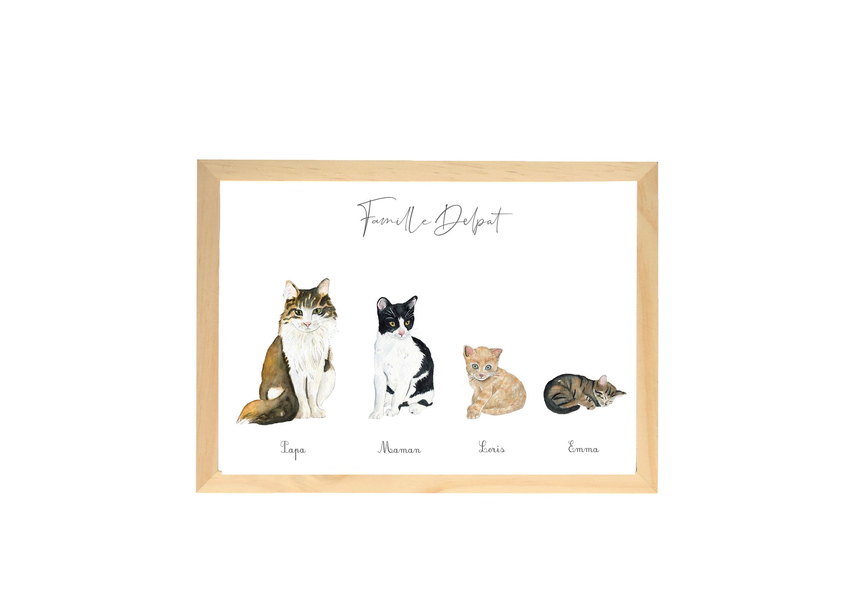 Cadre Famille Chat aquarelle personnalisée